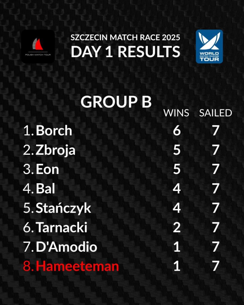 Group B is completed with 7 flights sailed. Borch, Zbroja, and Eon advance straight to the quarter-finals, while Bal, Stańczyk, Tarnacki, and D’Amodio will fight for the remaining spot tomorrow in the repechage. Unfortunately, Hameeteman is the first to be eliminated.